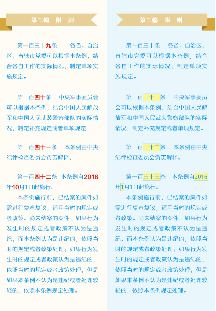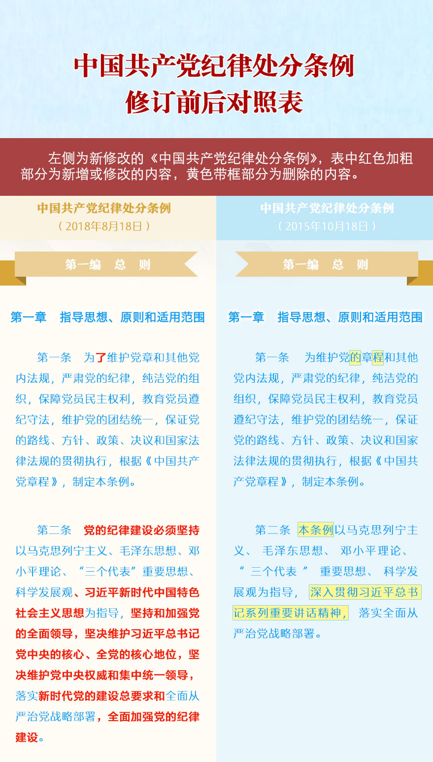 《中國(guó)共產(chǎn)黨紀(jì)律處分條例》修訂前后對(duì)照表